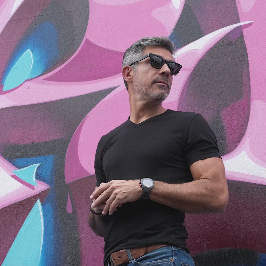 Surgical grade 316L stainless steel infused with gray IP for beautiful color and durability, screw-down case-back, gray knurled bezel with screws, and screw-down crown with LIV logo enamel