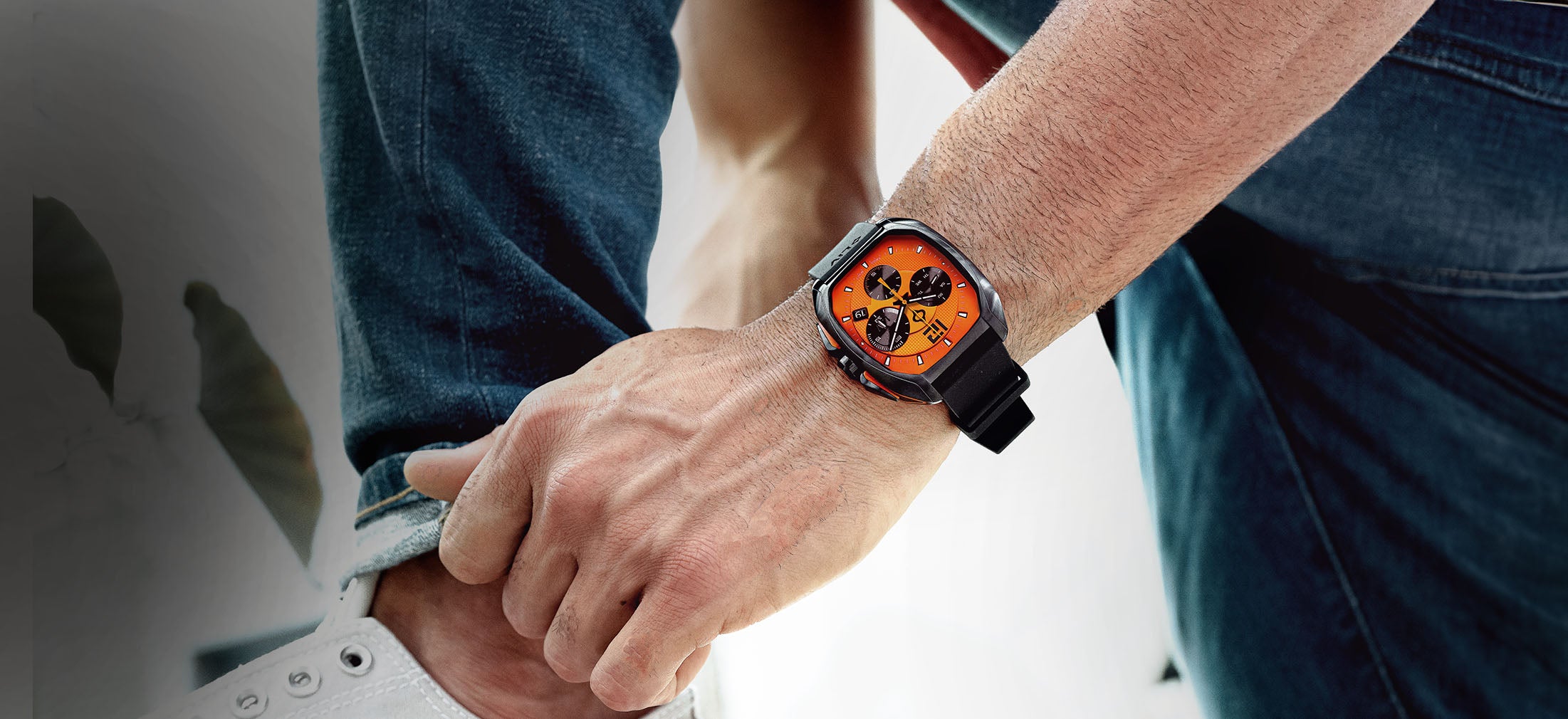 Disregarding all conventional watch designs and regular patterns, this watch is rectangular and round simultaneously. The unique stadium concave ring starts at a rectangular shape and becomes round, making this watch one of a kind.