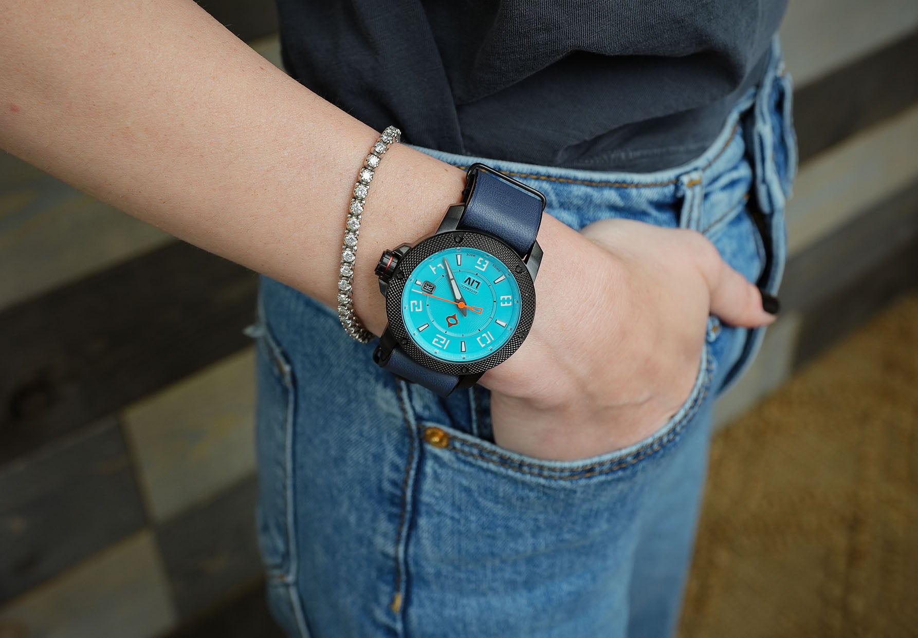 The GX1-A features the LIV signature four-layer sandwich constructed dial that highlights the design and brings analog time to life.